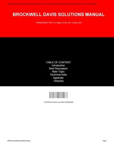 EXW - Download BROCKWELL DAVIS SOLUTIONS MANUAL Hardcover Internet Archive